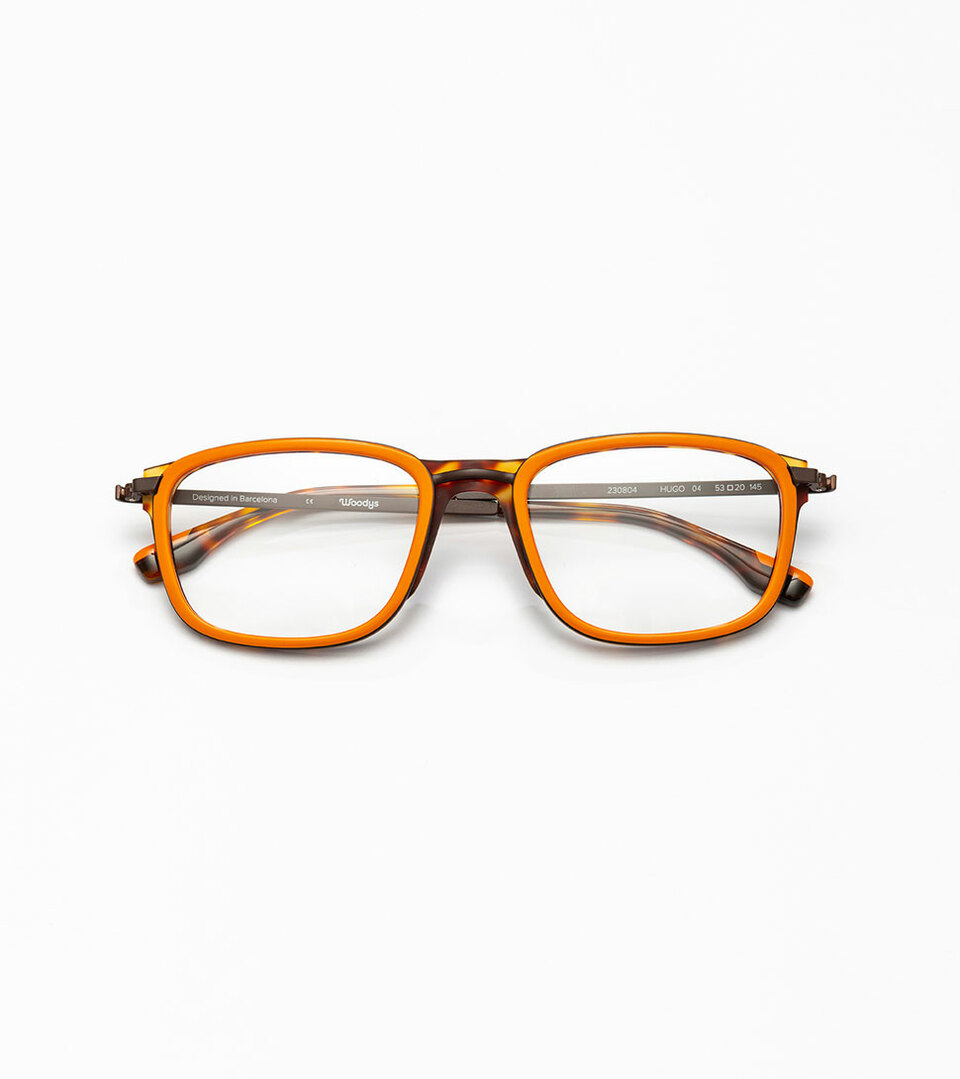 Introducing Hugo, a model that combines Italian acetate and high quality nickel-free metal. Its metal temples are engraved up to the end in laminated acetate with wood inlay.